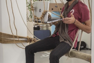 All decision making at all scales starts with the ability to have a good conversation. That’s the starting point of this year’s INSIDE curriculum. In the first studio of 16/17 the students were invited to participate in shaping their own workspace. They designed this workspace with waste material they brought from their one-day internships at helpful, nearby The Hague companies; for instance car parts, paper and clothes. This studio was guided by Jurgen Bey and Chester Chuang of Studio Makkink & Bey.